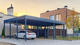 Большой односкатный навес из поликарбоната «хай-тек» для автомобиля и зоны входа