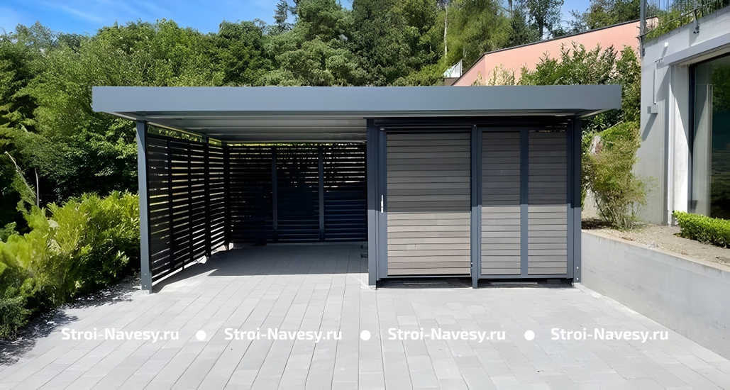 Односкатный закрытый навес high-tech «беседка» из профнастила